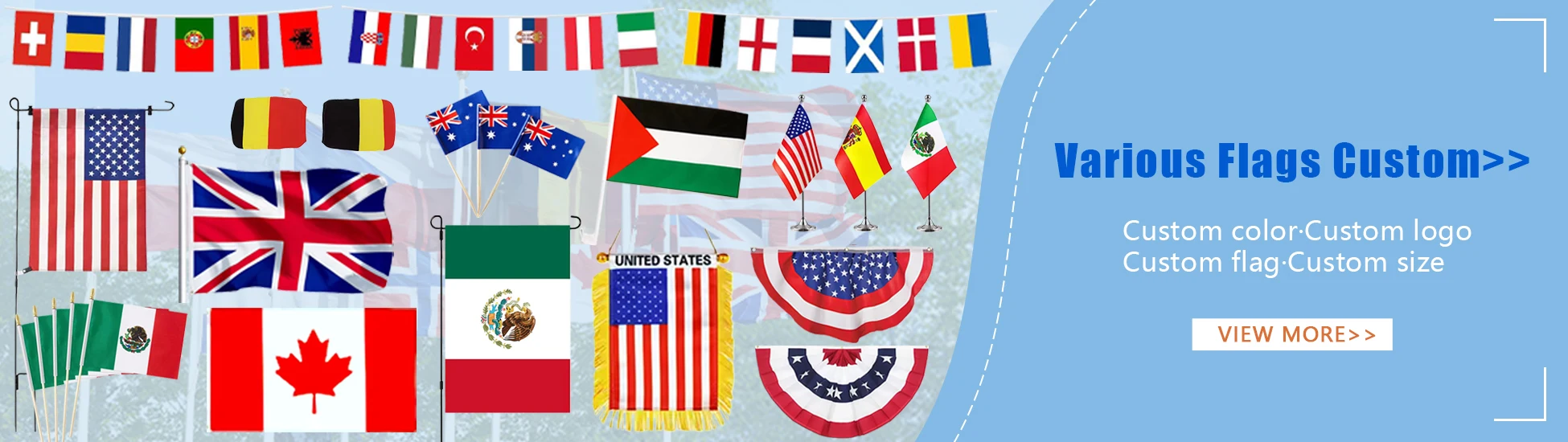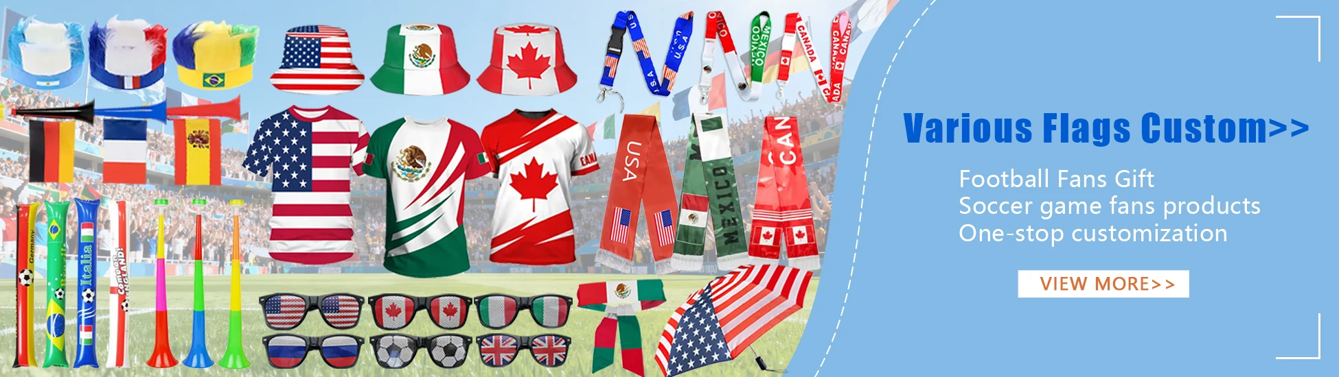 Personalizado de alta calidad barato portátil impermeable todos los países bandera estadounidense Canadá México deporte fútbol gran evento para fans Cheer