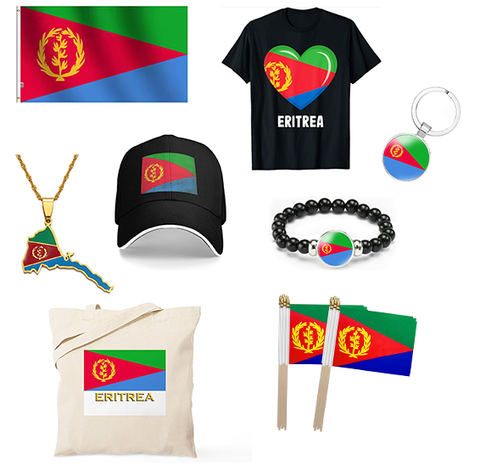 Conjunto de bandera de Eritrea al por mayor, bolso de mano, camiseta, pulsera que agita a mano, collar de sombrero de béisbol, banderas nacionales para promoción
